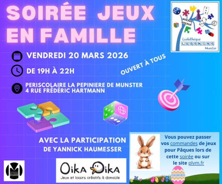 Retrouvez ici les informations concernant la soirée jeux en famille et les commandes de Pâques